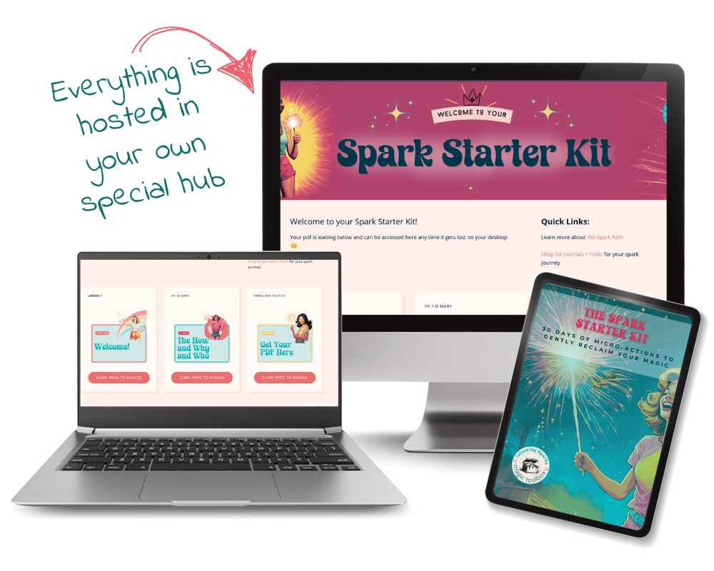 Pop your info in below and you’ll get instant access to your private Spark Hub — home to your free Starter Kit. You’ll also get occasional emails from me with gentle sparks of inspiration (you can unsubscribe anytime).
